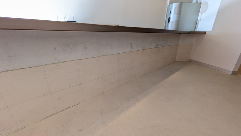 カウンター下部分はお客様の靴があたり汚れやすいことと汚れを落とすのが大変